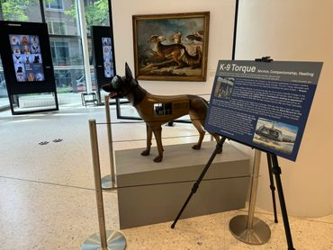 Torque's sculpture is much more than just a physical structure - it serves as an enduring tribute not only to Torque, but to the faithful working dogs (search & rescue, law enforcement, military) who have served our country with unwavering courage and dedication. It also represents the many untold stories of handlers who have carried their experiences with them long after their service. These stories, often buried deep within the hearts of veteran handlers, find a voice through Torque's sculpture. Her display is a place where the silenced narratives of the past come to life, allowing the handlers to share their experiences, heal their wounds, and find solace in the company of those who understand their journey.