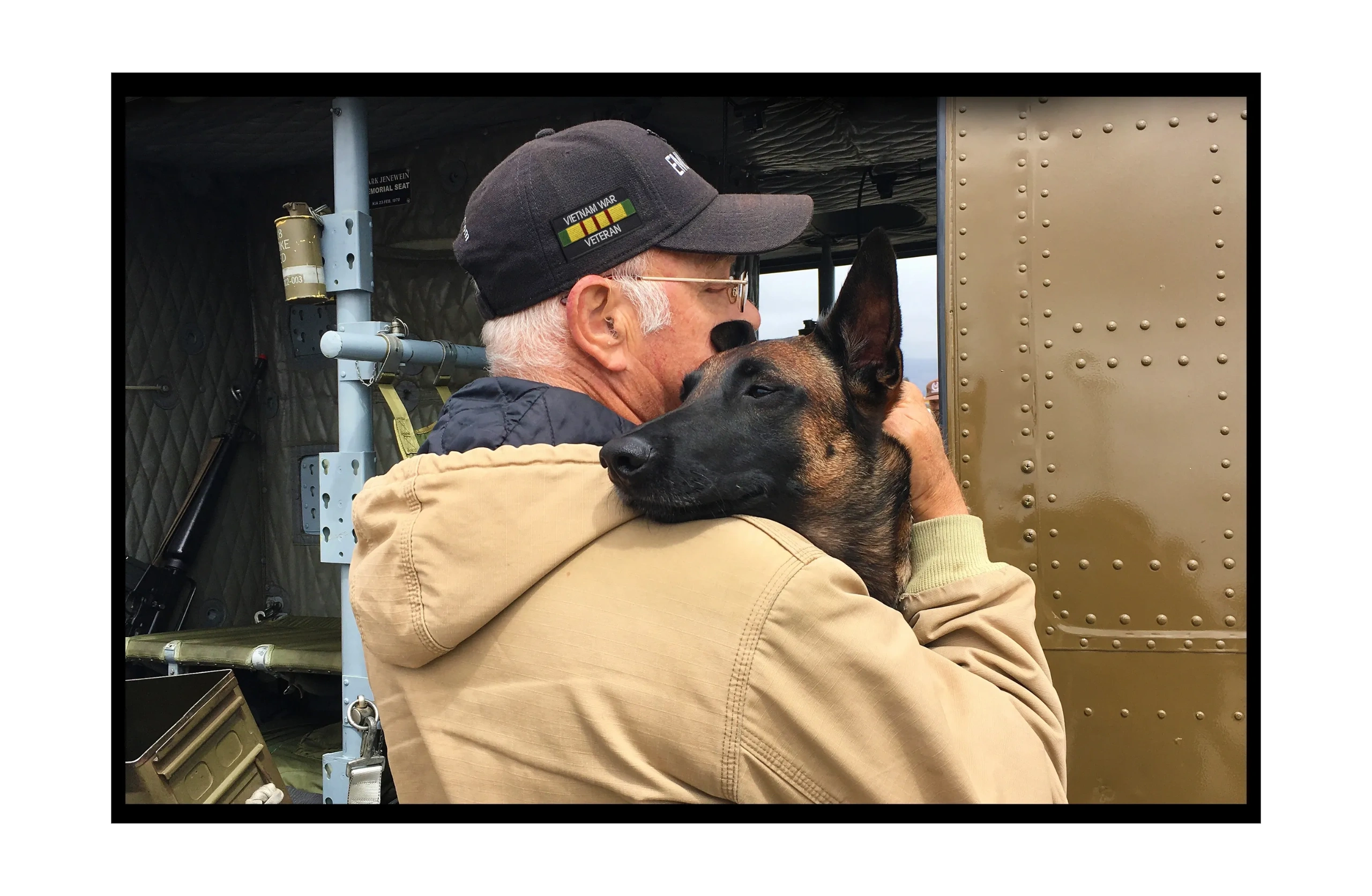 Torque’s presence in this Vietnam War era Huey tells another story, too — that of the more than 4,000 loyal U.S. War Dogs who served as patrol and detection dogs during the Vietnam War. These brave dogs were credited with saving an estimated 10,000 American lives, yet their contribution has been largely forgotten. Fewer than 200 of them returned home. Some 325 died in the line of duty, while around 600 others succumbed to tropical disease. At the end of the war, the rest were either killed or left behind on official orders. It is no surprise that some of the most haunted veterans of the Vietnam War are dog handlers who were cruelly ordered to leave their faithful companions behind.